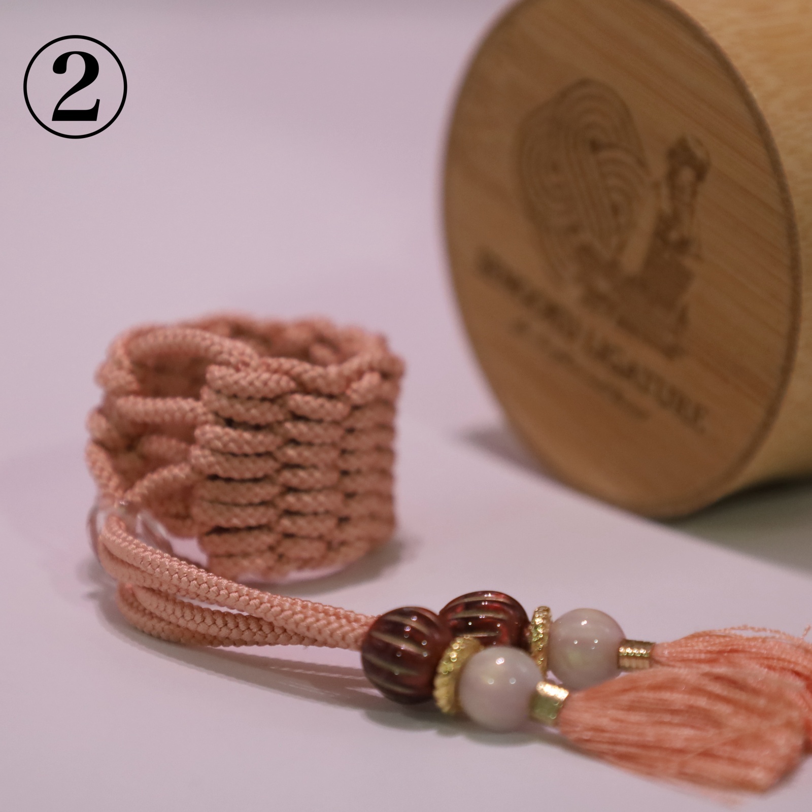 Protection, bonds, vows... Kumihimo, a traditional Japanese craft dating back to the Heian period, has long been used for a variety of purposes. The cultural meaning of “tying” has been passed down through generations. Braided from 100% silk with care, the cords are both strong and elastic, and they retain their shape.