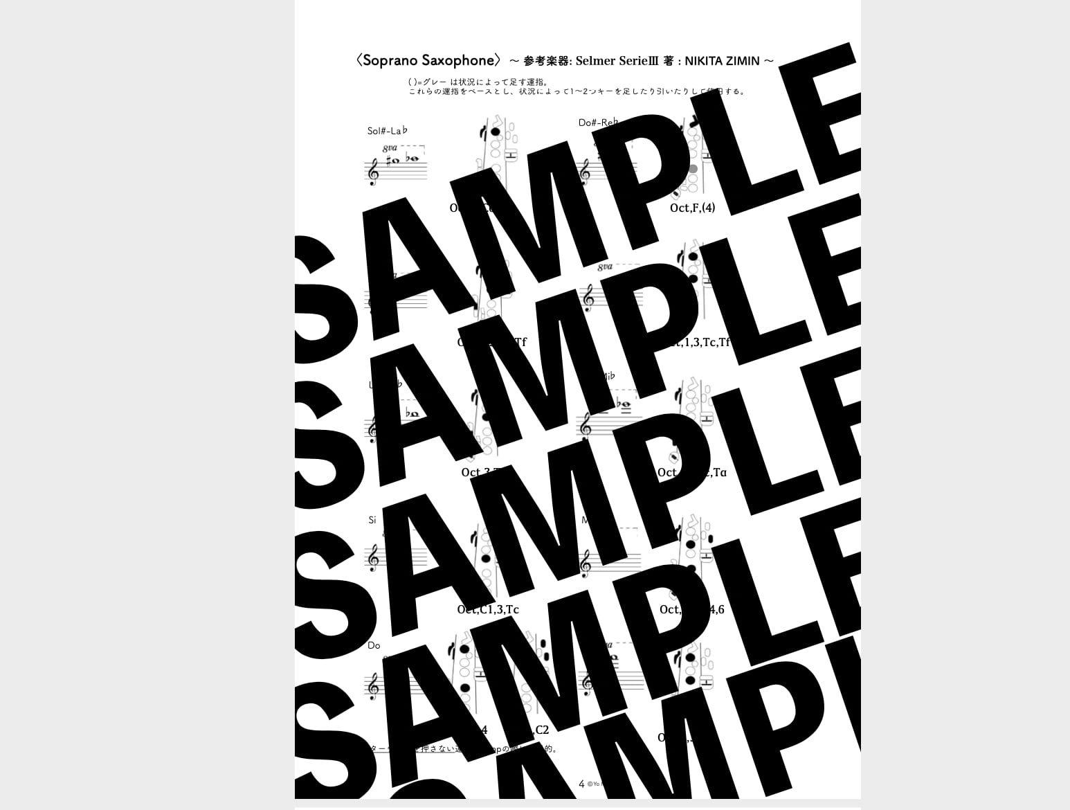 ちなみにソプラノからバリトンまでの全てのフラジオ運指が載っています。