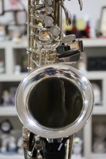 Selmer社の銘機、MarkVIの後継機種であるMarkVII。パワフルさ、キィのサイズ感のボリュームアップなど、後継機でありながらMarkVIとはまた違ったテイストのMarkVIIですが、こちらの個体はさらにシルバープレート製です。彫刻、刻印がはっきりしていることなどから、リプレートでないと考えられます。