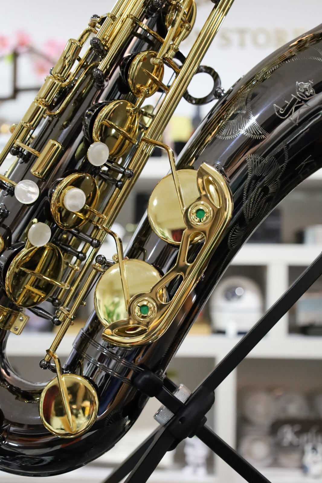 Julius Keilwerth社のブラックニッケル製サックス、SX90R BNです。こちらはプロサクソフォン奏者、松井宏幸氏にご出品いただきました。ご本人がサブ機として選定したものの、ほとんど使用されず新古品に近い状態のコンディションです。