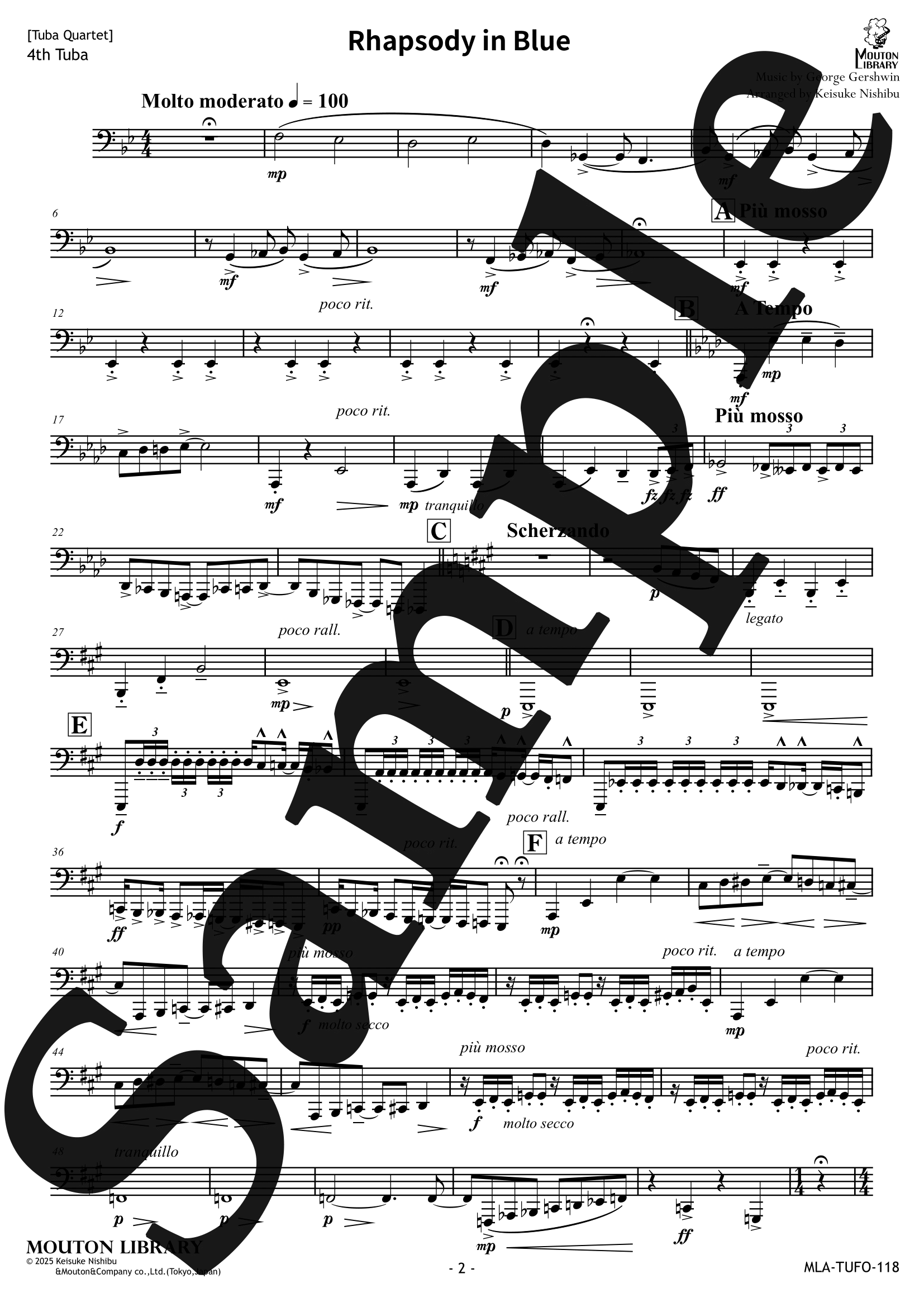 To address this, this arrangement goes beyond a simple redistribution of notes, incorporating numerous ideas to preserve the essence and richness of the original work. In many arrangements, the piano solo sections are often shortened or omitted, but here they are treated as highlights unique to the tuba ensemble and retained as much as possible. When performing, it is highly recommended to study the original score or orchestral recordings carefully, so that you clearly understand which sections were originally for the piano solo.