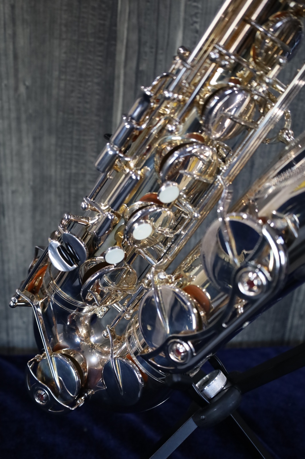 今回入荷した YTS-62S は、その現行4th世代モデルの銀メッキ仕様で、全体的にとても綺麗な状態を保っています。使用に伴うわずかな擦れはありますが、演奏コンディションは良好で、十分に大切に扱われてきた個体です。