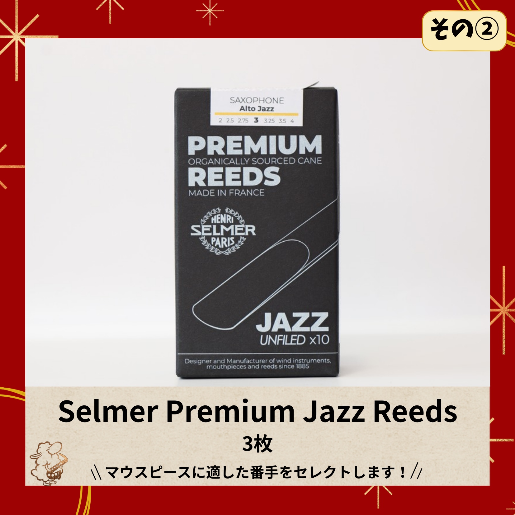 Selmer Premium Jazz Reeds 3枚 (マウスピースのオープニングに対応したリードが付属します)