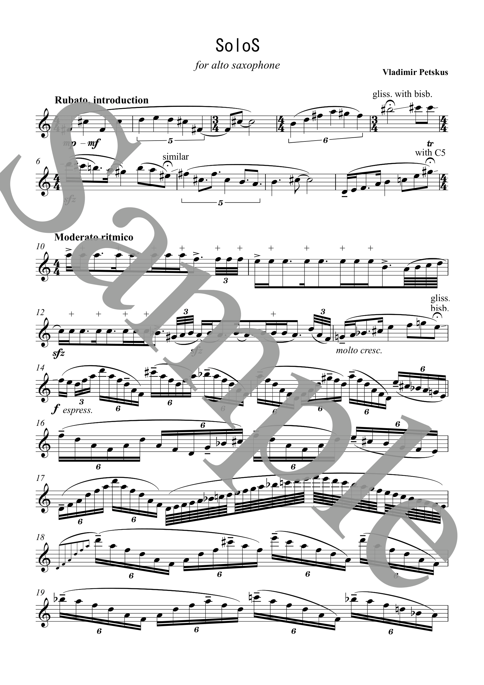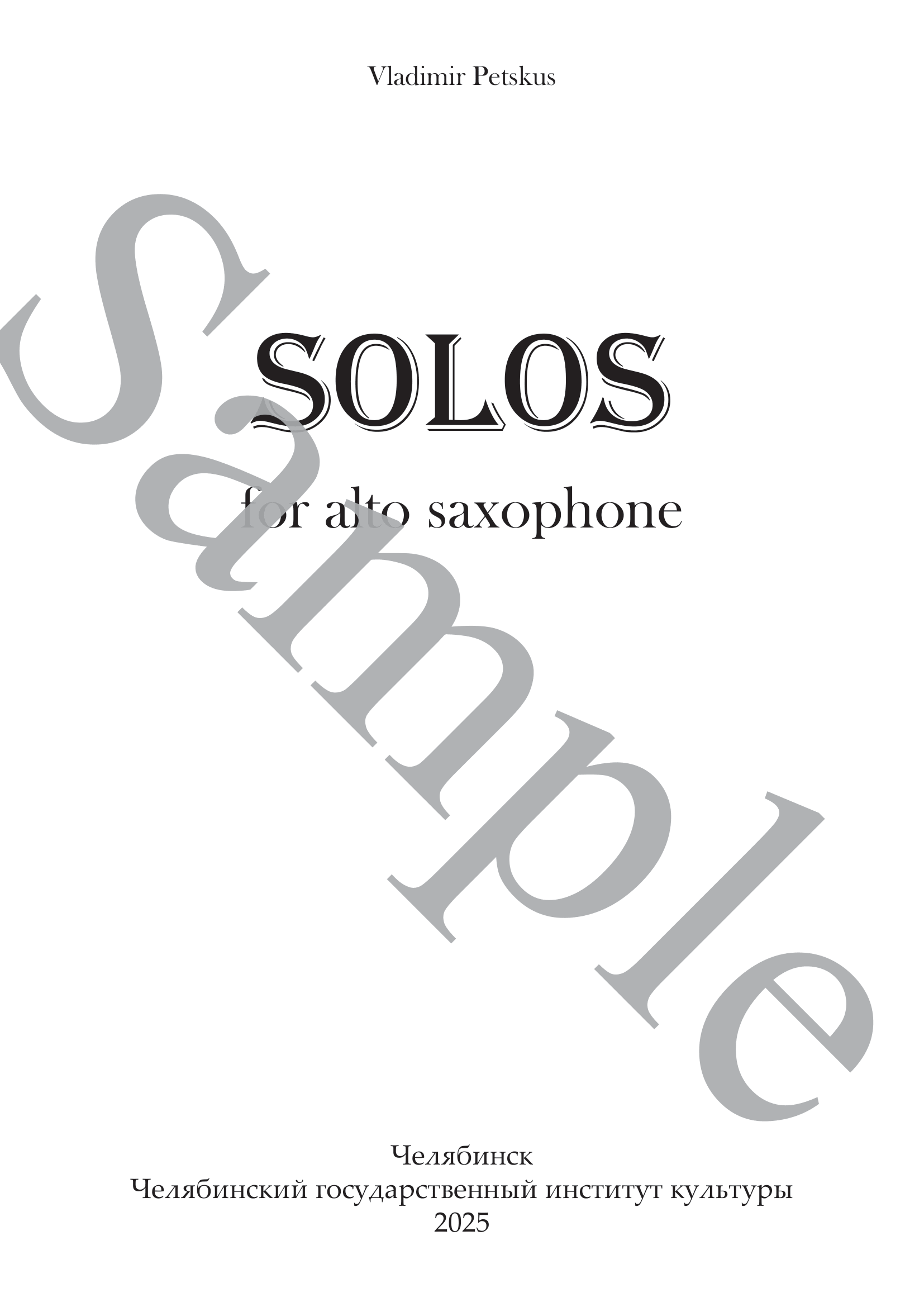 This is a work for solo alto saxophone by the young Russian saxophonist Vladimir Petskus. As the cover suggests, the piece is structured as a musical palindrome, remaining identical whether read from the beginning or the end.